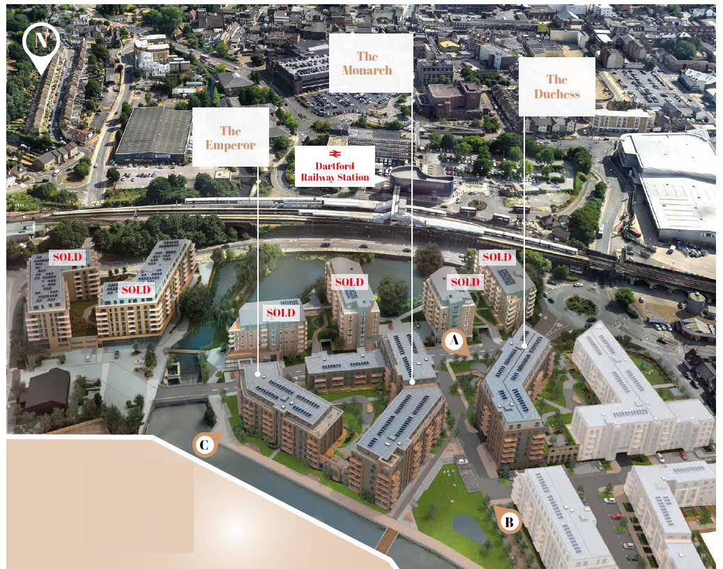 This development has a stunning collection of 1, 2 and 3 bedroom apartments situated in the heart of the vibrant town of Dartford. It is the perfect place for families, young professionals and couples with beautiful surroundings of the historic Mill Pond and green open spaces. this new development will enhance the community of Dartford by providing a mixture of 400 apartments and a local high street with prime retail and commercial space.